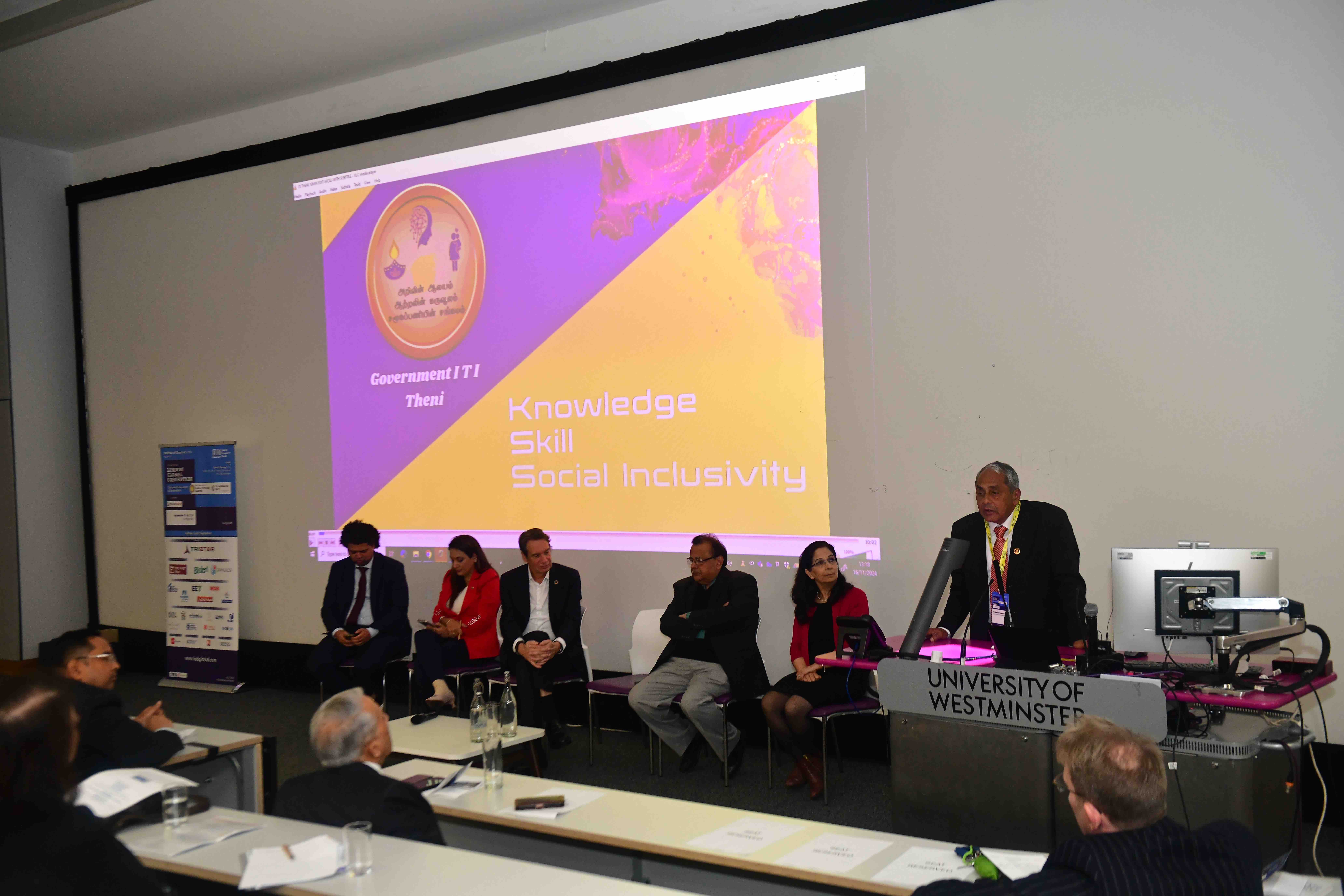 Prof. Dr. V Aravind addressed the global audience in the University of Westminster, London with the up gradation of Govt. Industrial Training Institute at Theni to global standards fulfilling six millennium sustainable goals of Economic & Social Council of United Nations. A documentary feature film was made. The teaser was screened to the audience. In his address he presented another ongoing Industry Cluster Project of Ceramic Industry at Vriddhachalam towards the UN goals, extending business, employment and lively hood to nearly 200 small scale industries and 10000 people. On the achievements in the Govt. ITI.